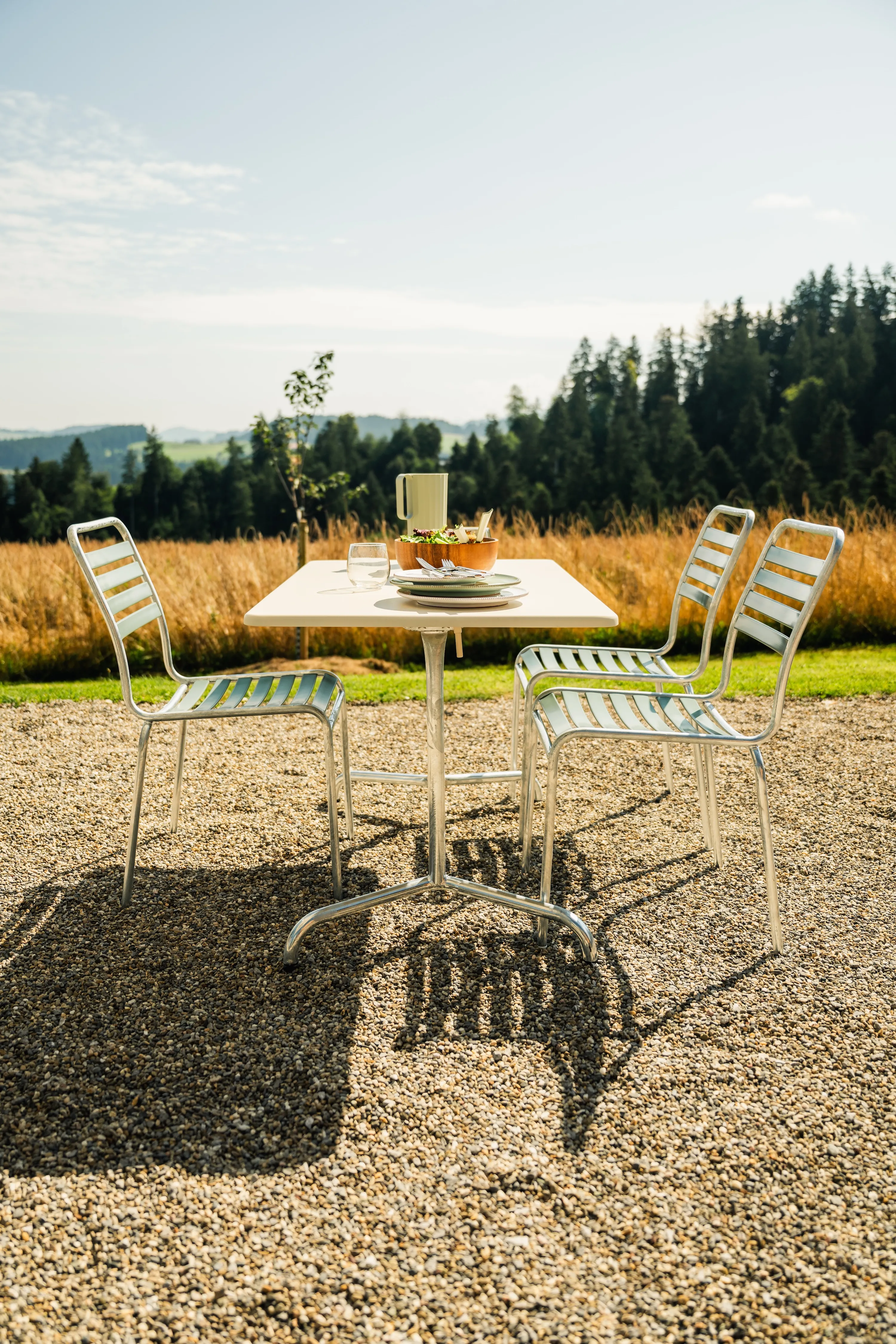 Hier wird zusammen gegessen, gelacht und Zeit geteilt. Schweizer Gartenmöbel, gemacht für lange Abende und viele Gäste.
